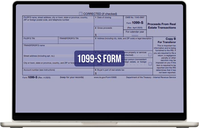 The 1099-S form is filed by the party responsible for closing the transaction, like a title company, escrow company, or real estate agent.